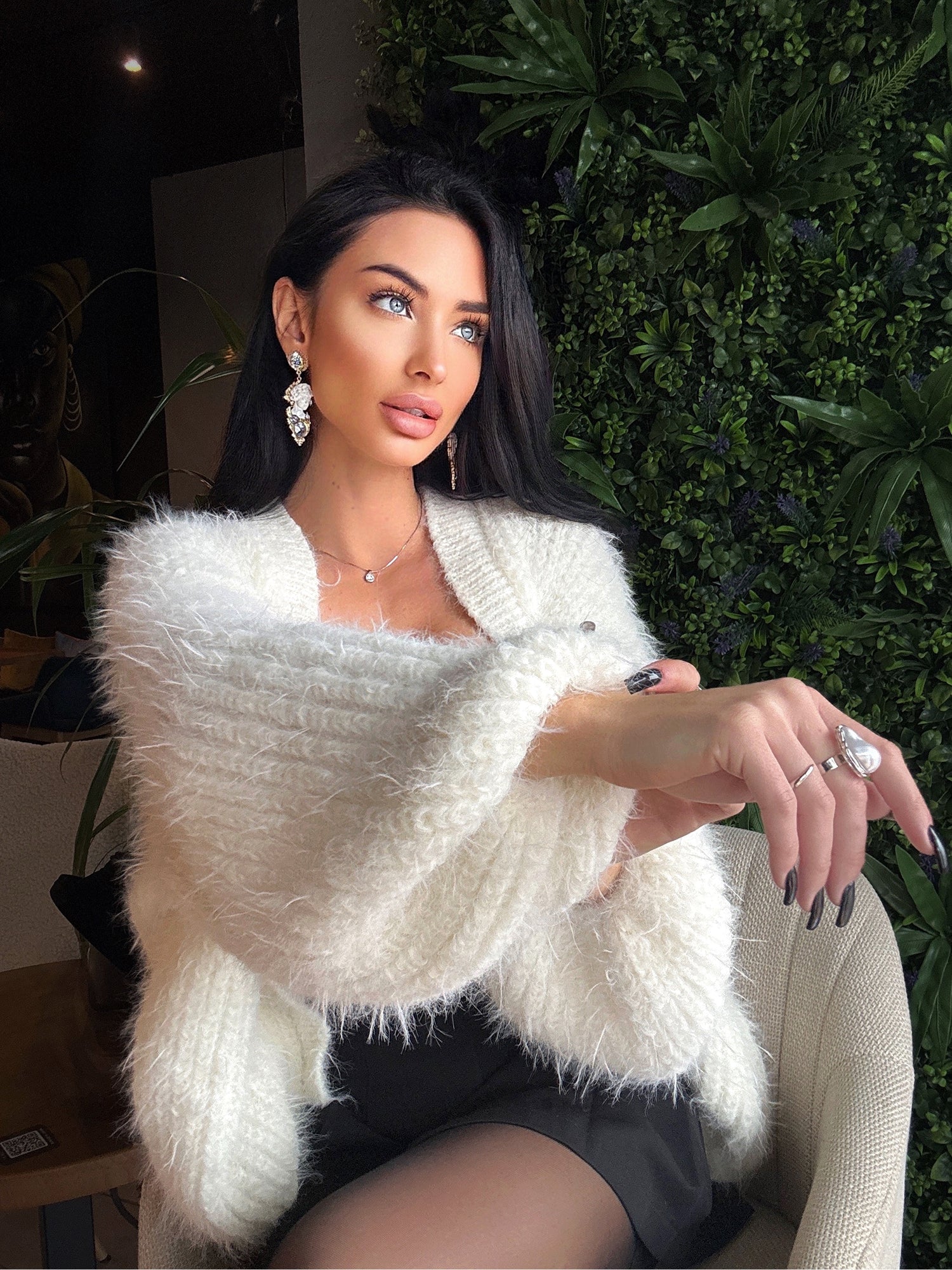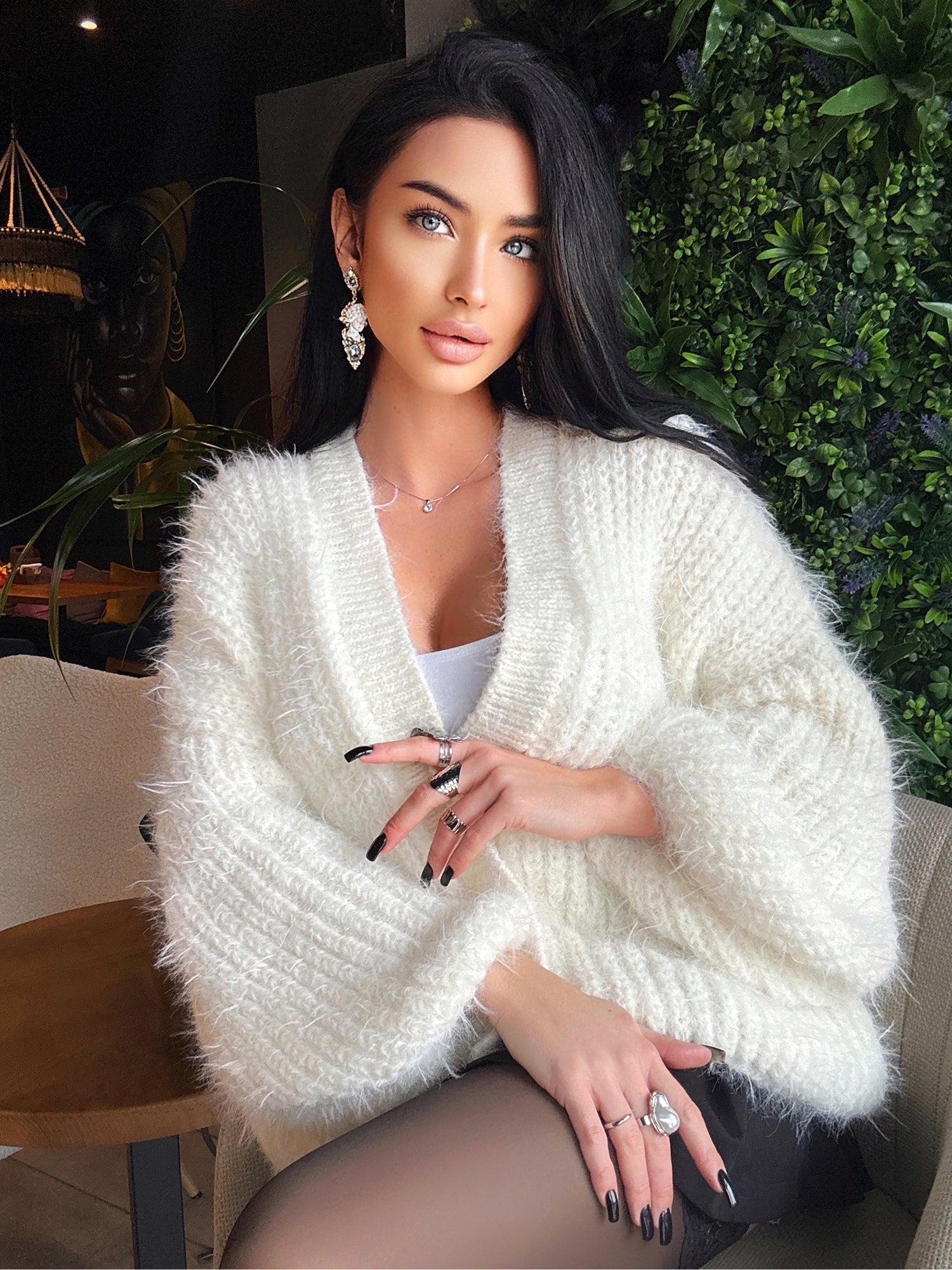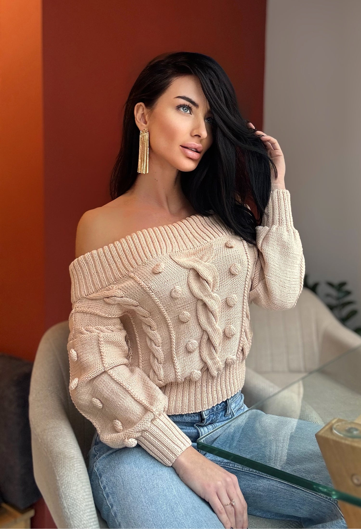 Alpaca wool cable knit oversize pastel sweater dress womens Off white wool sweater light Beige pullover V -collar Chunky knit loose sweater