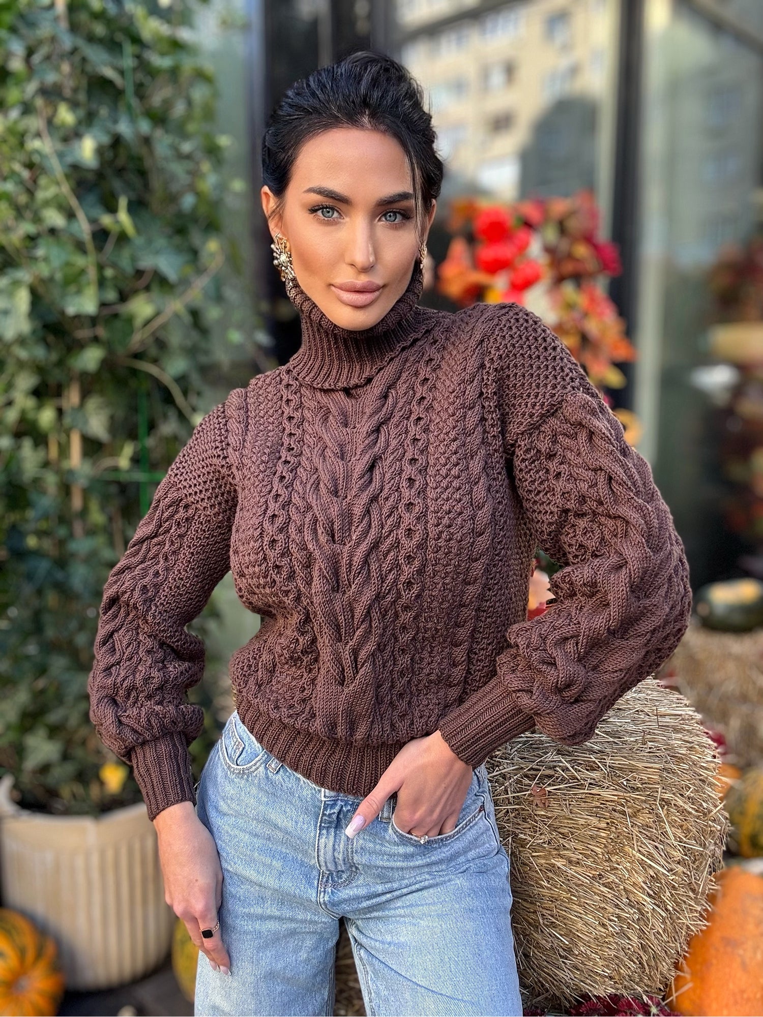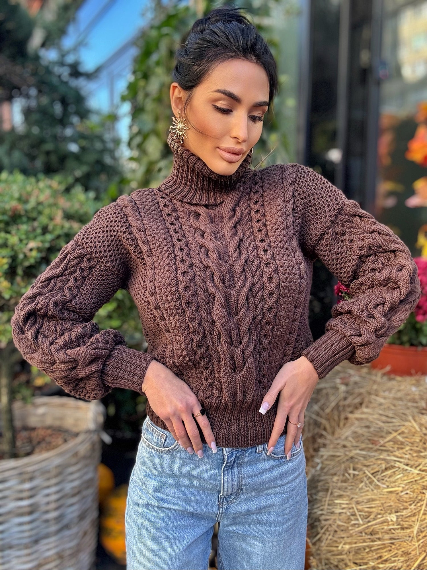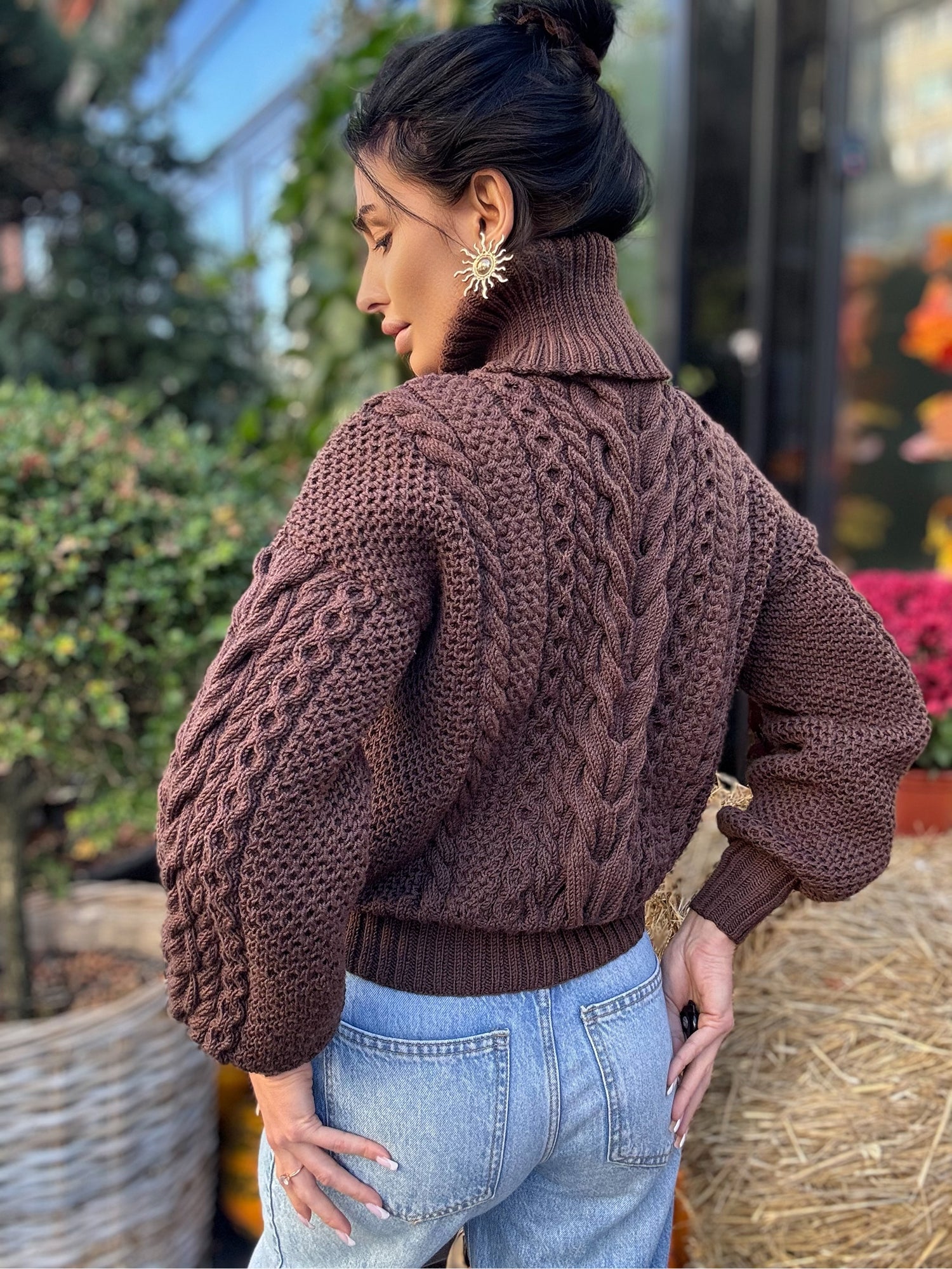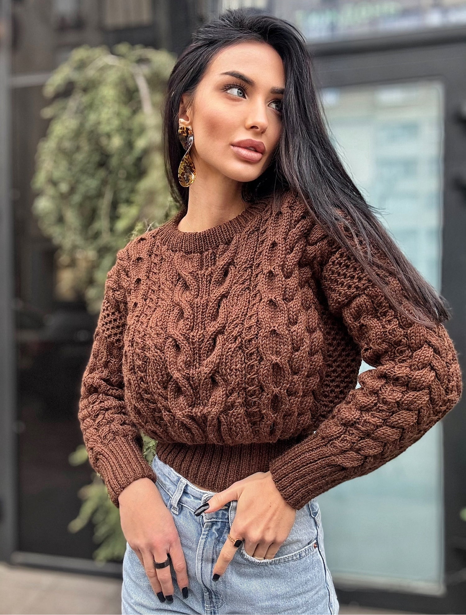 100% soft merino wool brown chocolate hand chunky knit sweater for women Hand knitted jumper Cable knitting Loose knit pullover