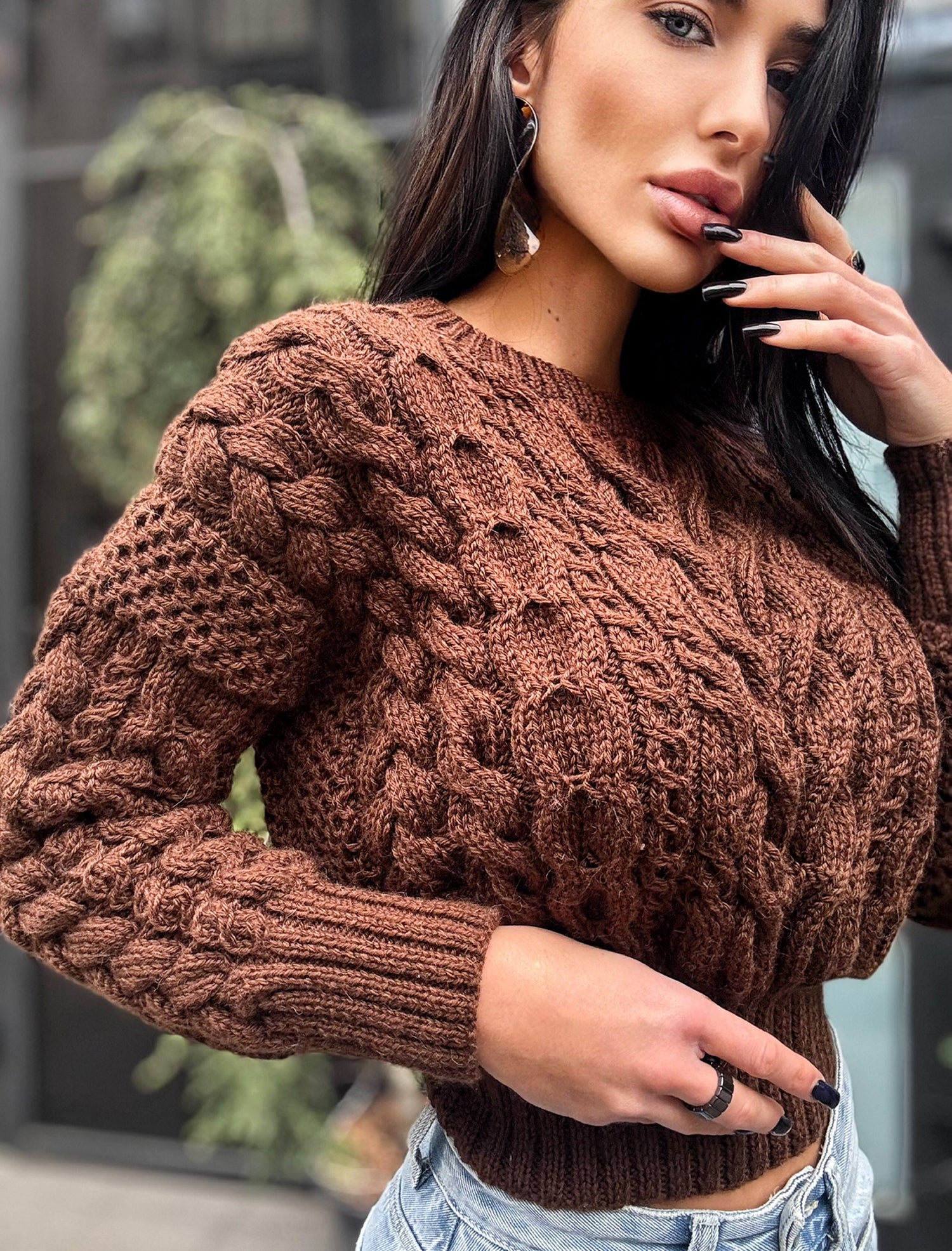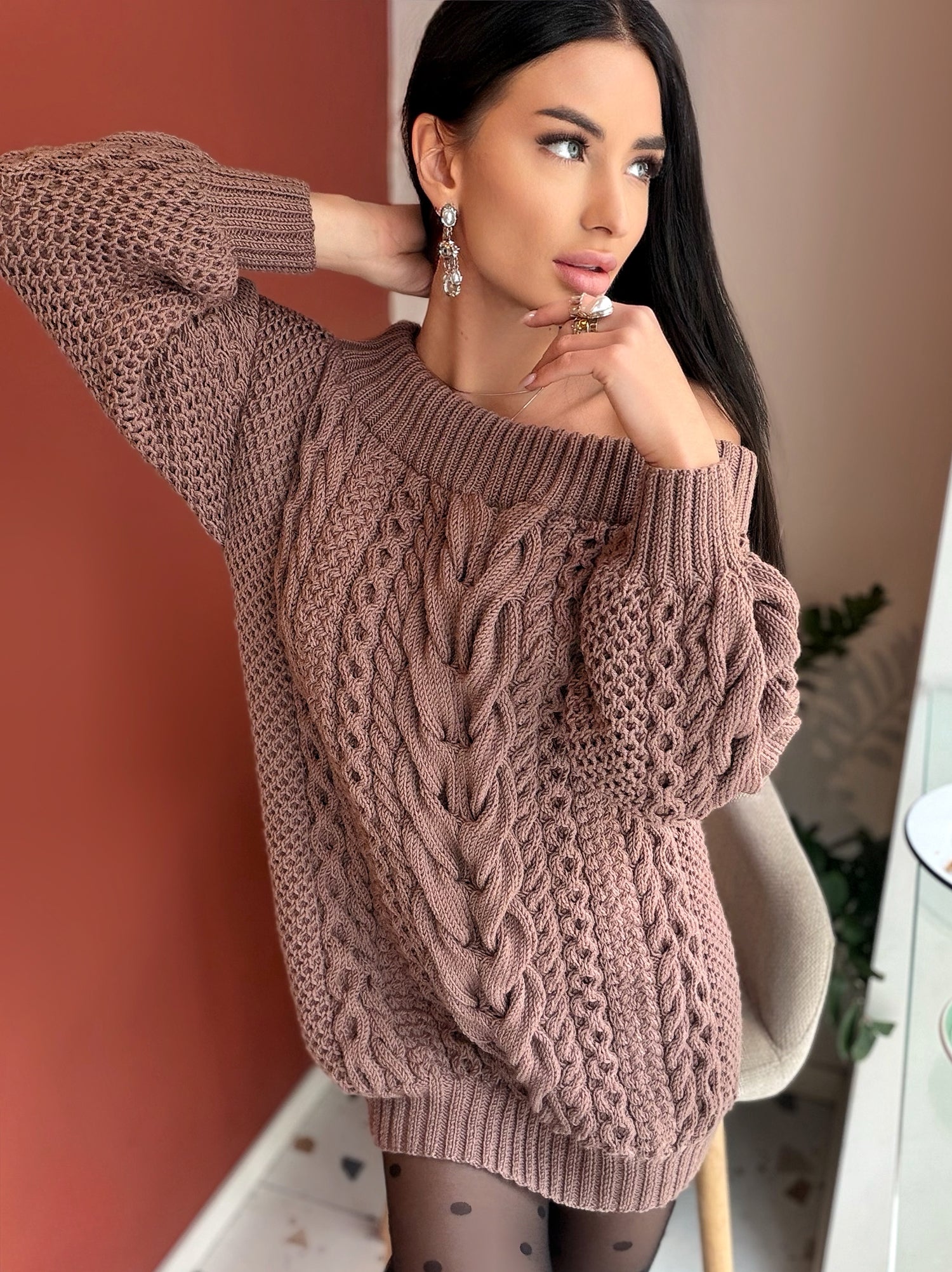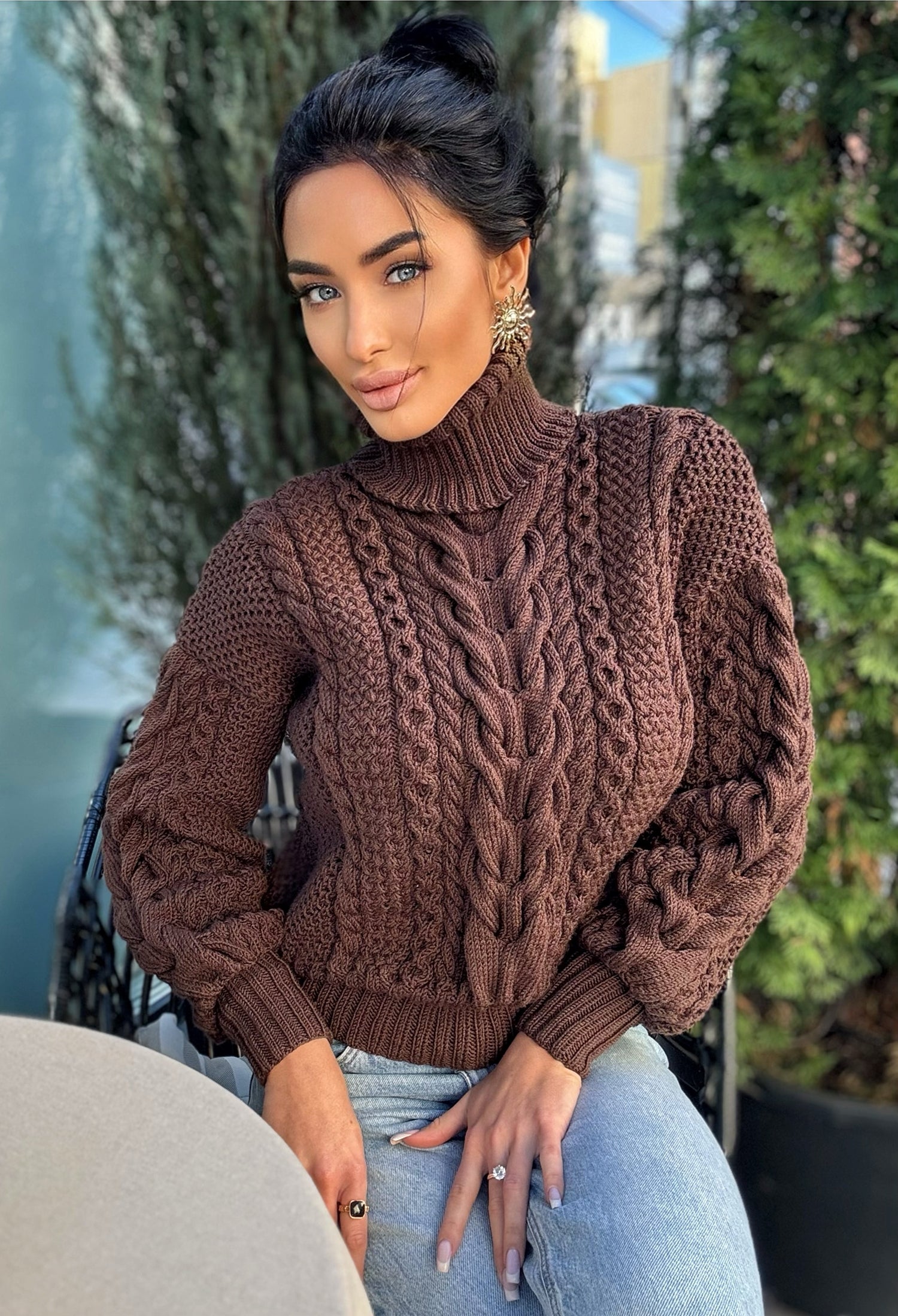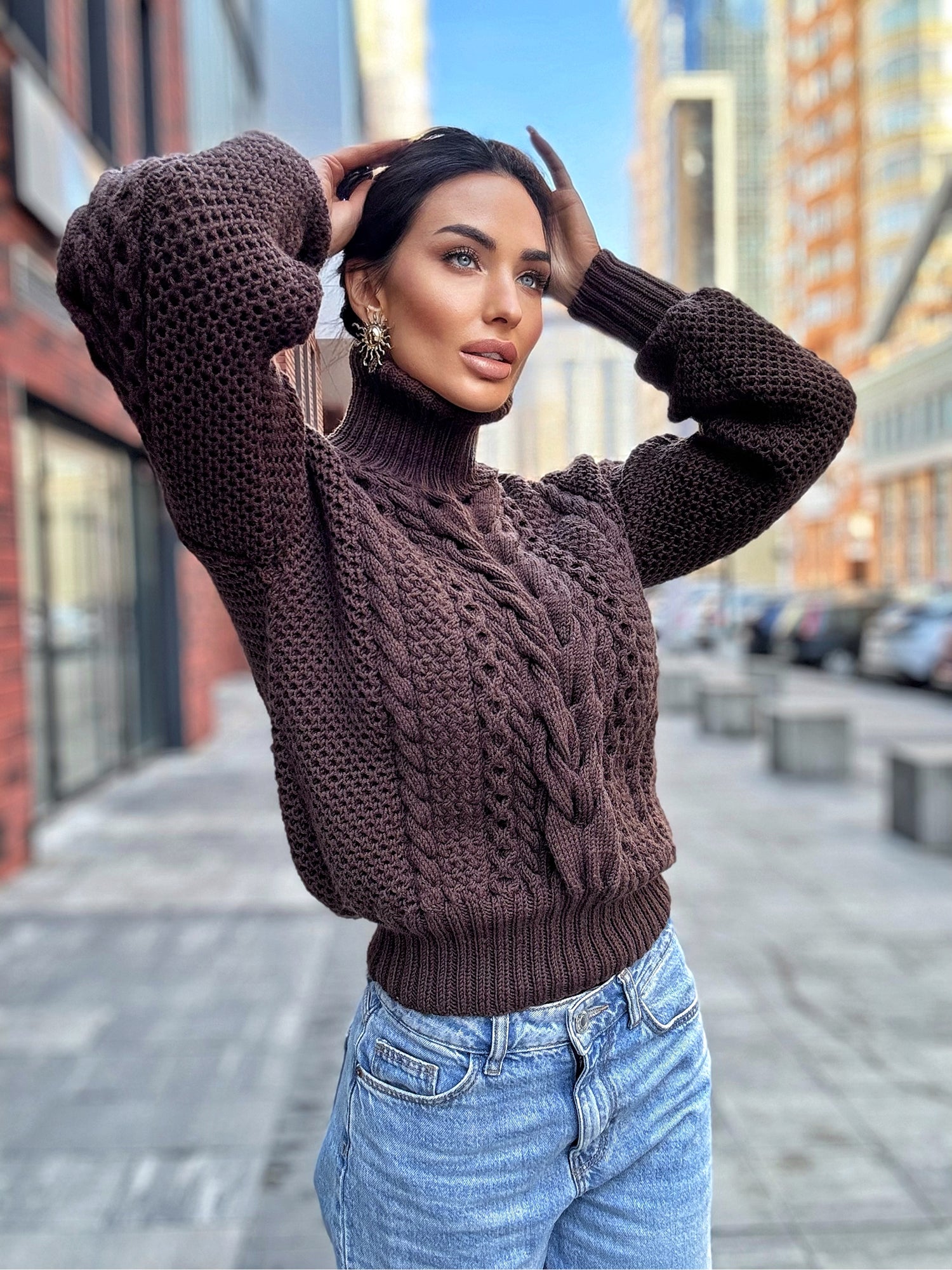 100% soft merino wool brown chocolate hand chunky knit sweater for women Hand knitted jumper Cable knitting Loose knit pullover