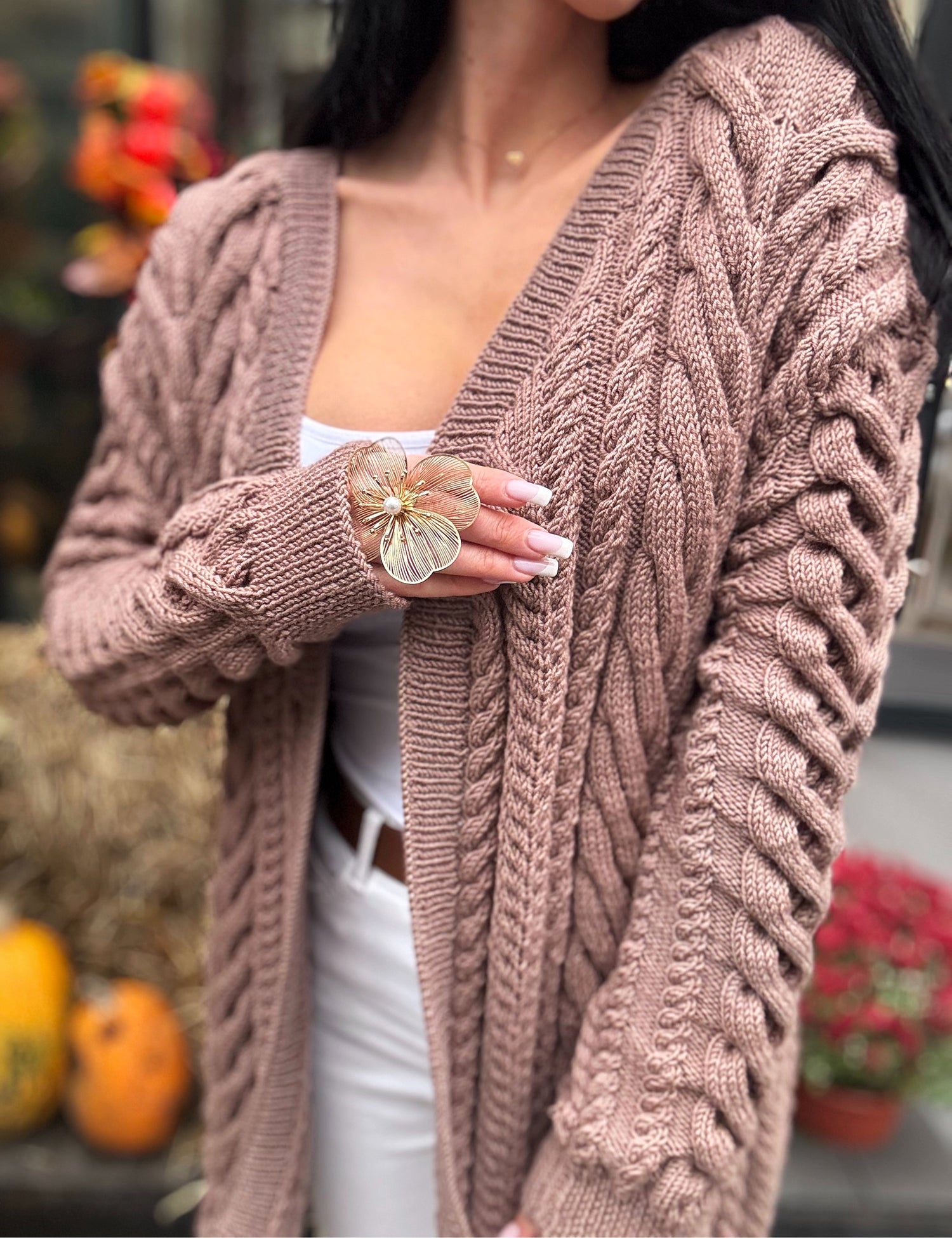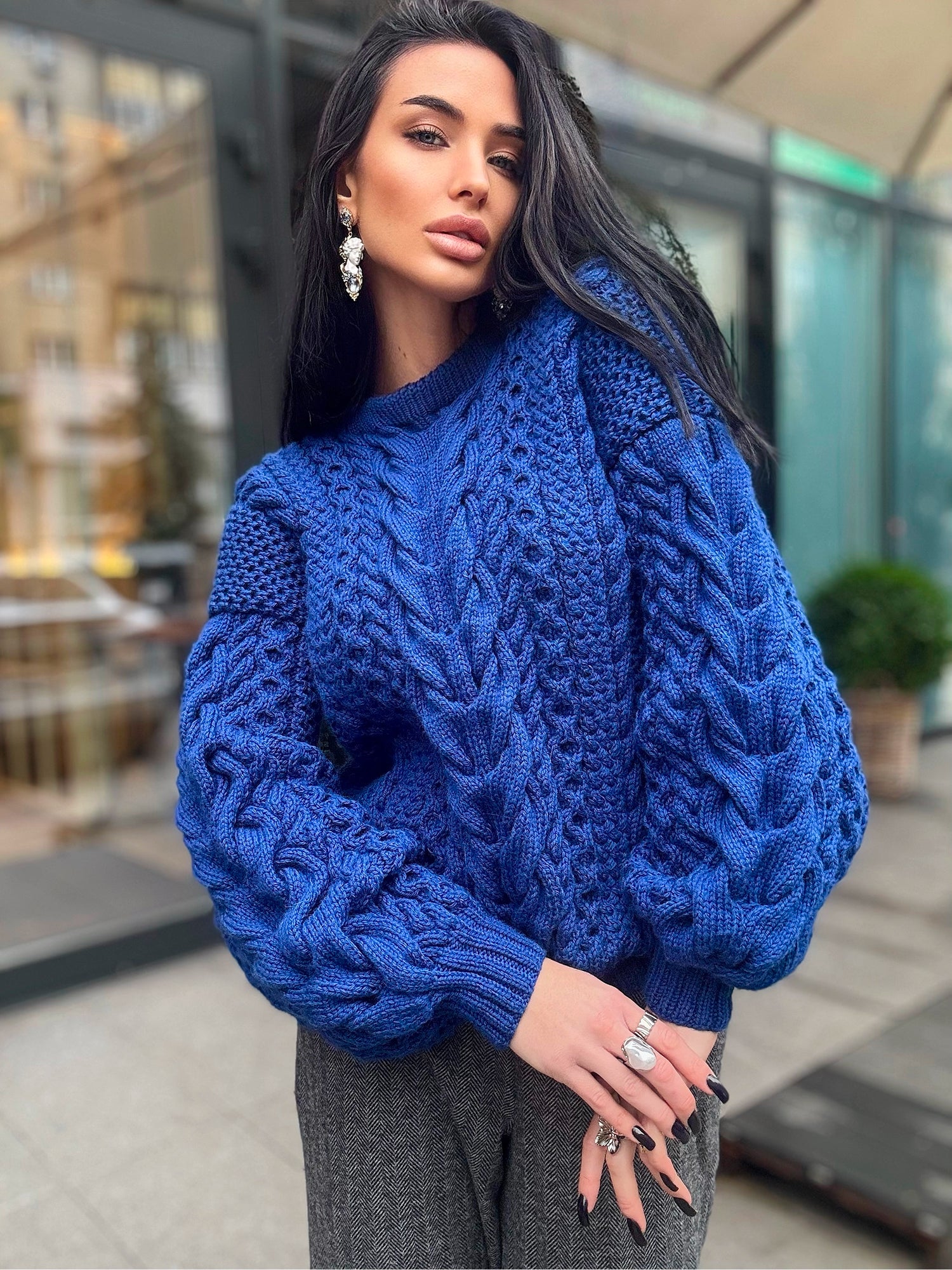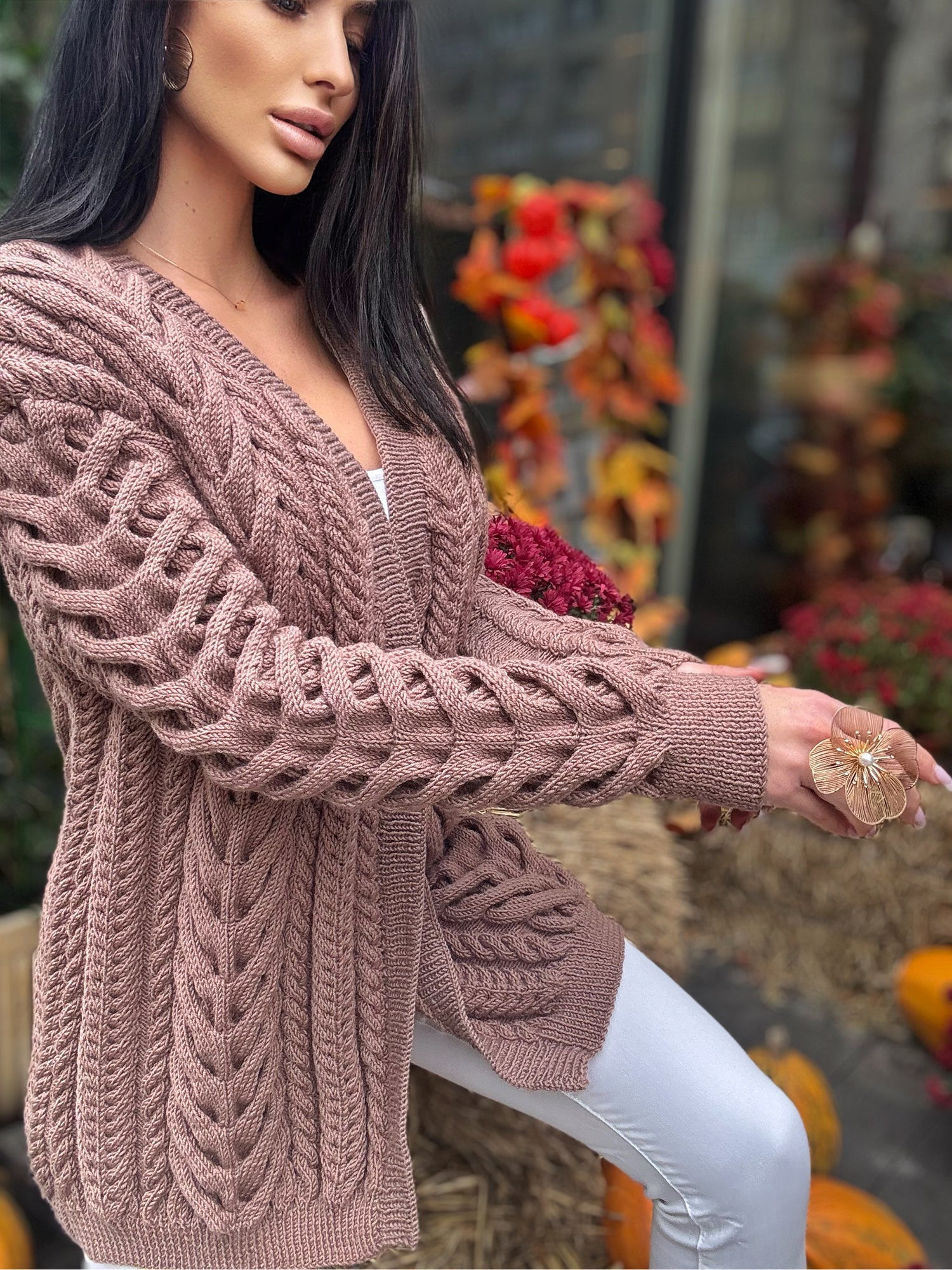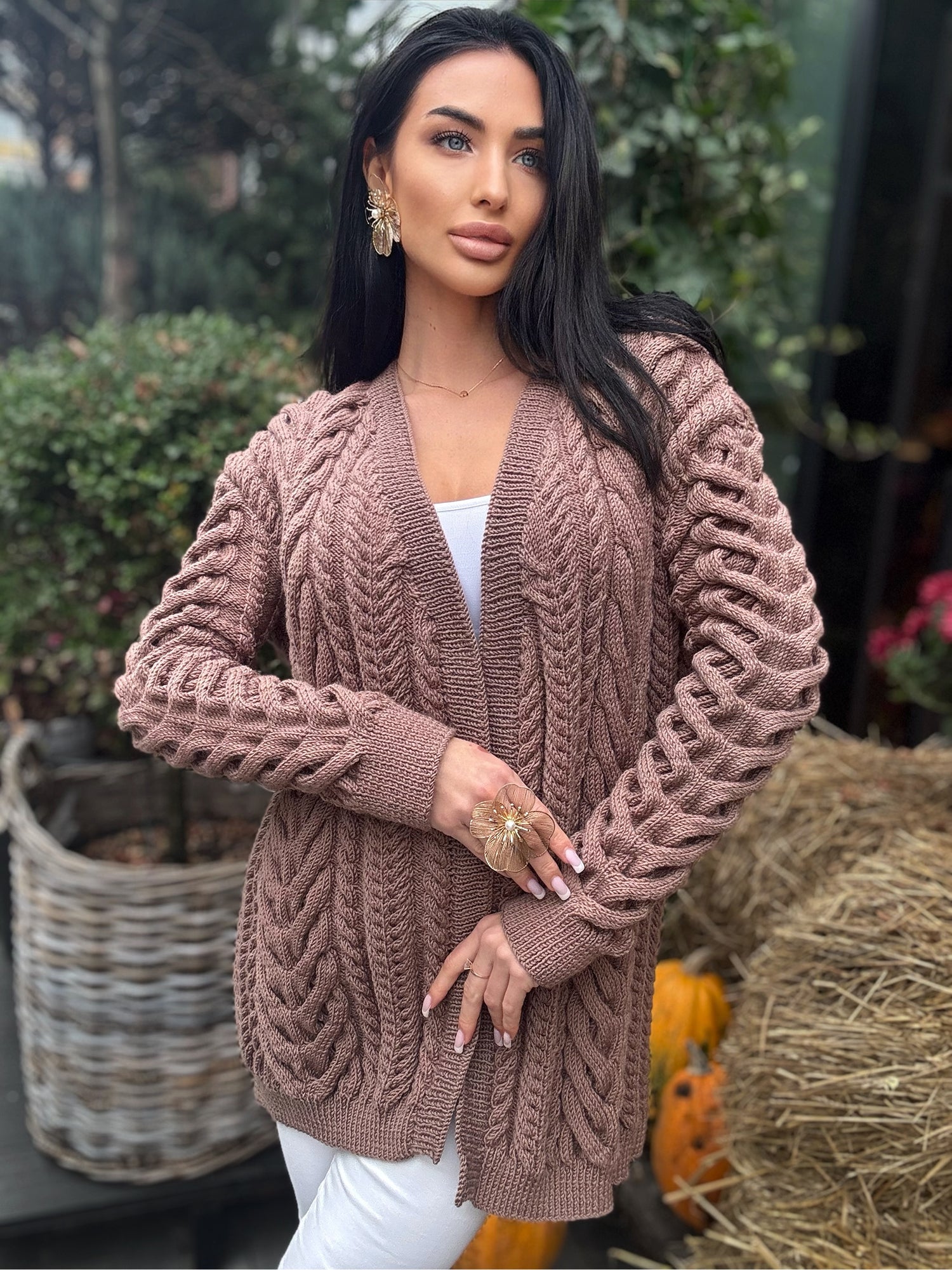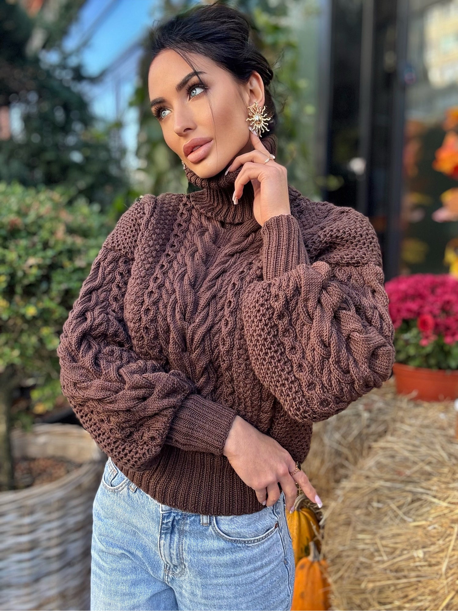 100% soft merino wool brown chocolate hand chunky knit sweater for women Hand knitted jumper Cable knitting Loose knit pullover