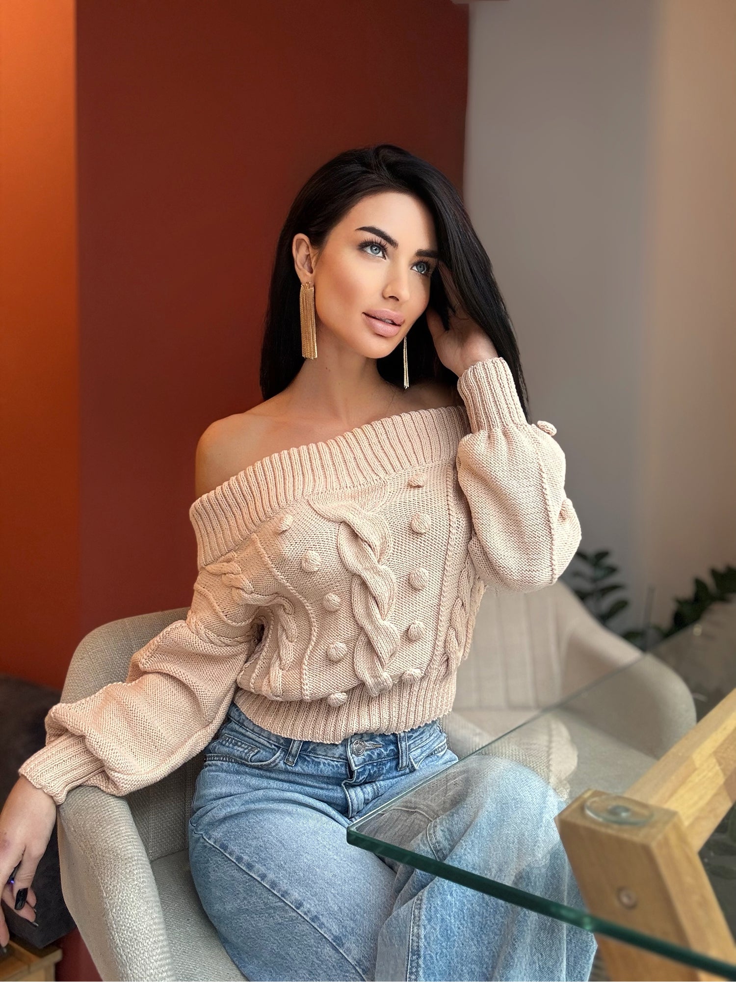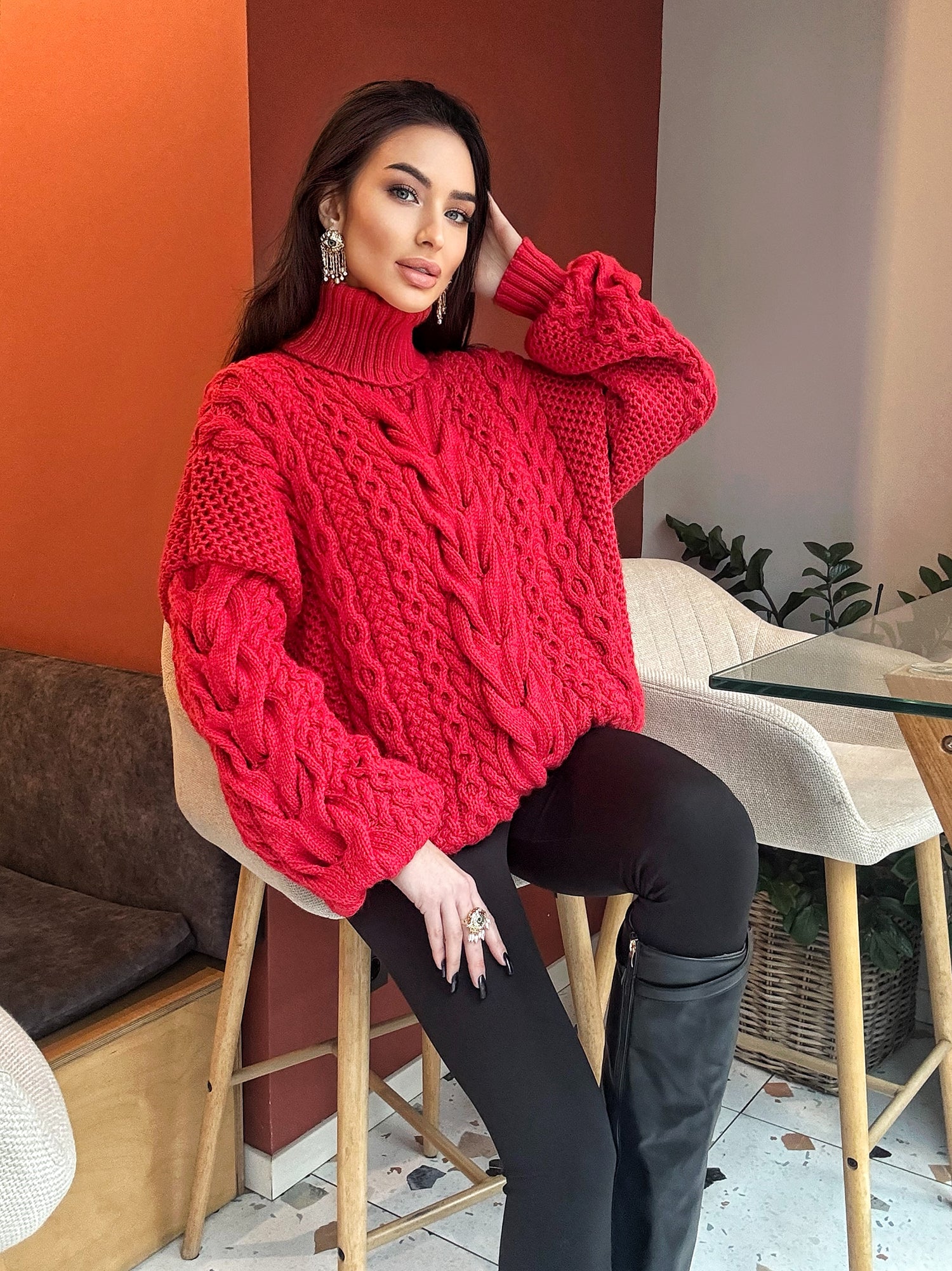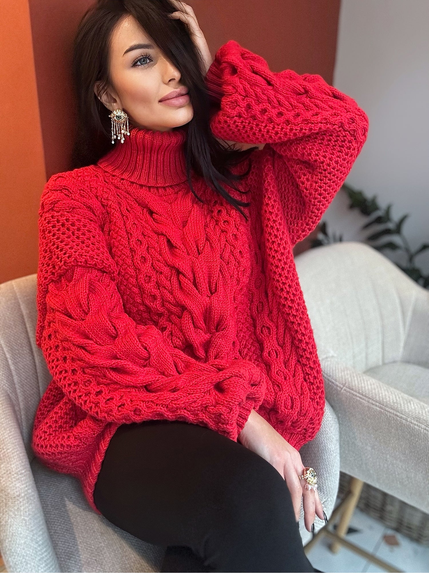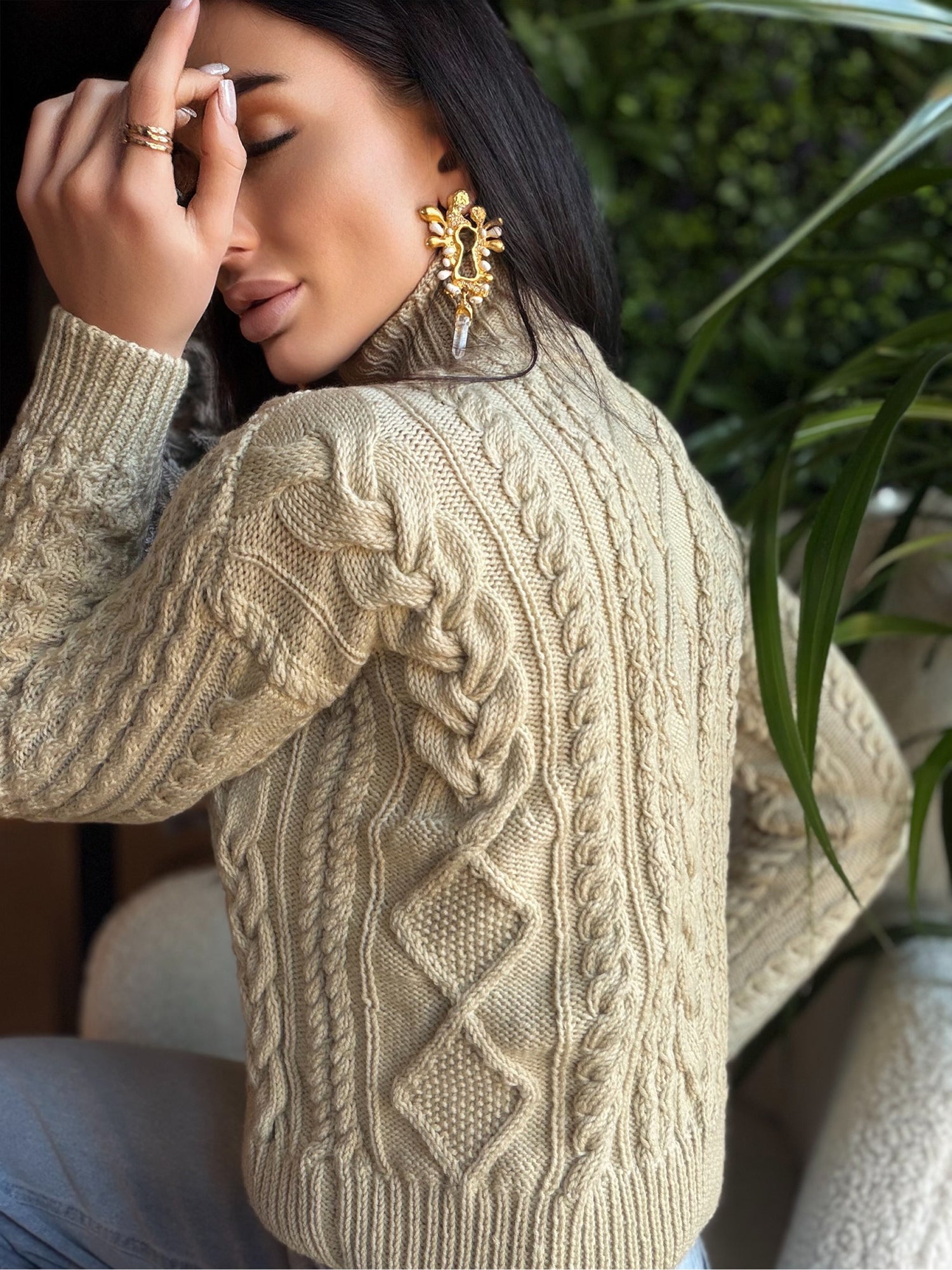 100% soft merino wool brown chocolate hand chunky knit sweater for women Hand knitted jumper Cable knitting Loose knit pullover