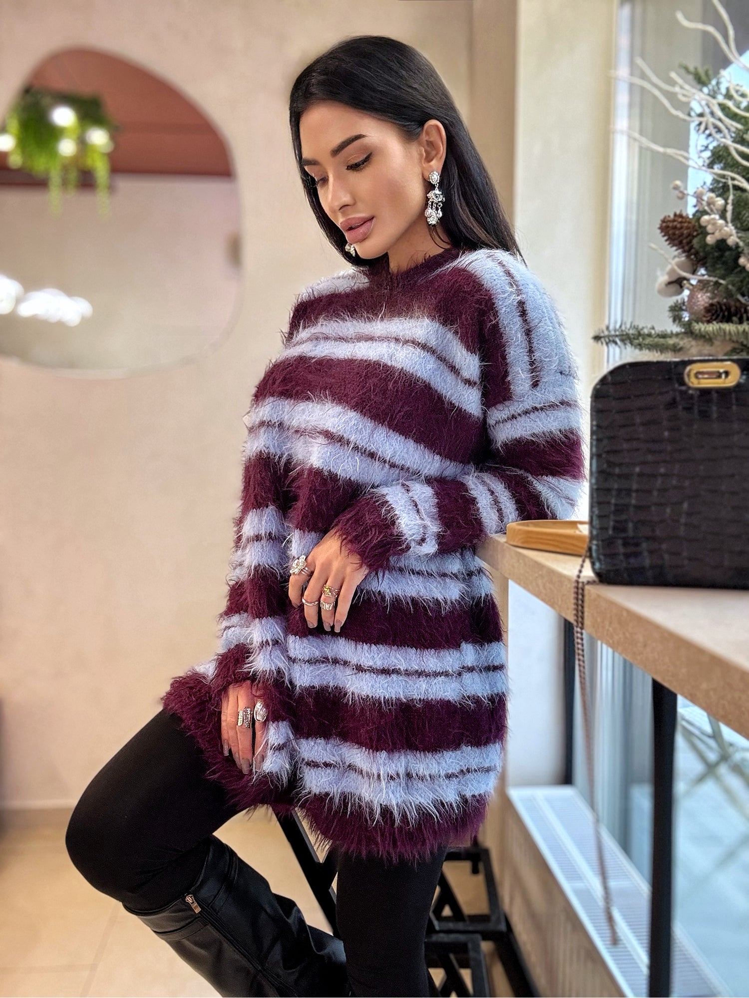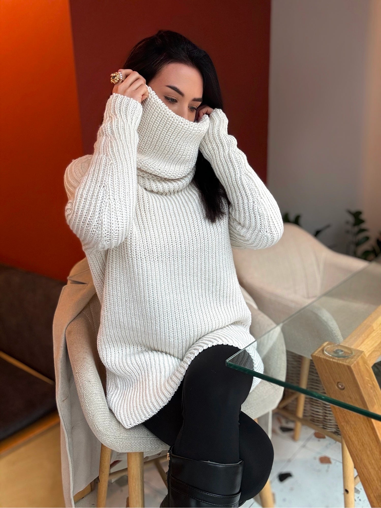 Alpaca wool cable knit oversize pastel sweater dresses women Beige melange pullover V -collar Long sweater Chunky knit loose sweater Cozy
