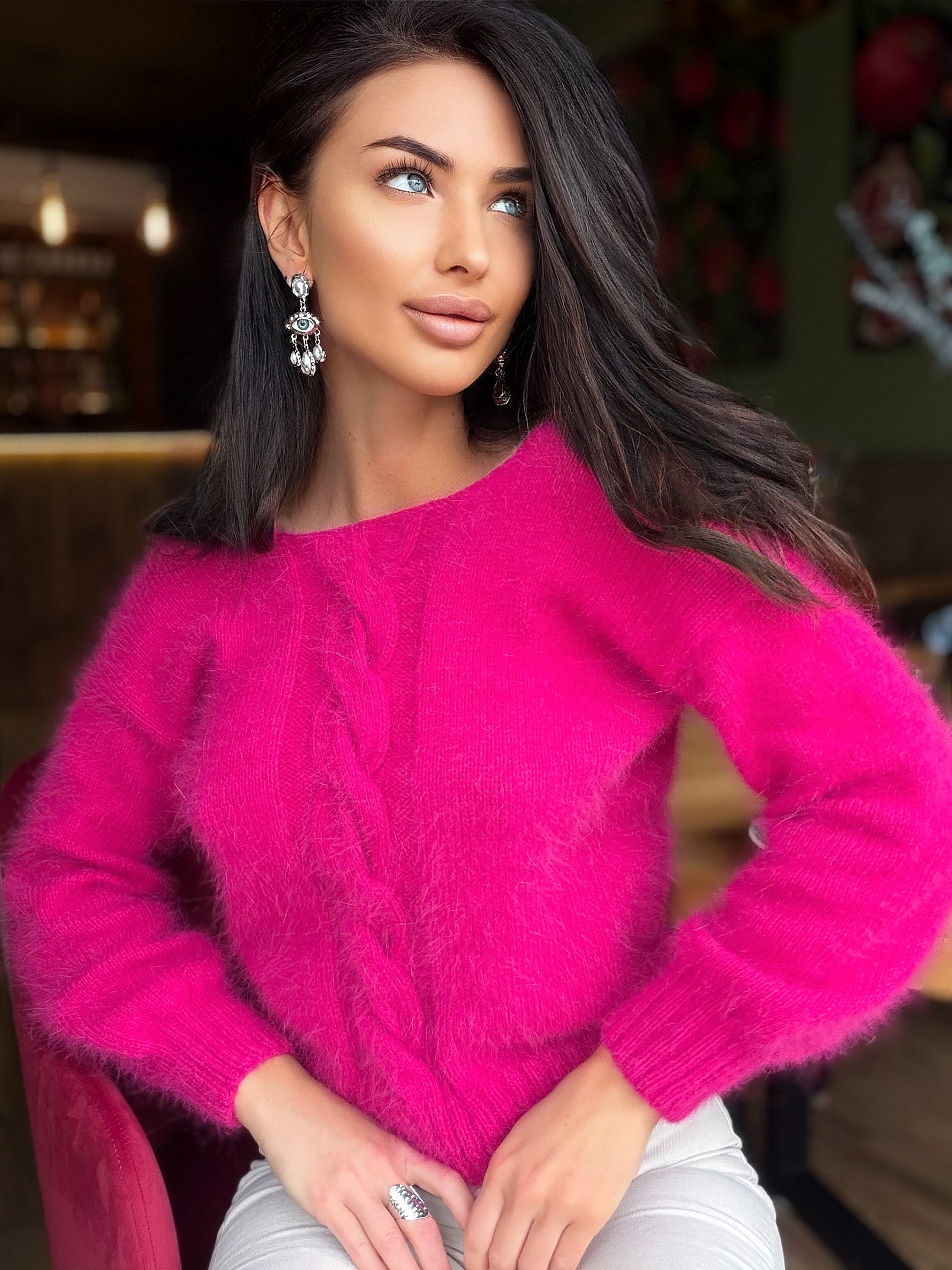 One Of A Kind Crop Hand knit Sweater Ready To Ship Fuchsia Cable Knit Sweater Chunky Pink Sweater Handmade Wool Pullover Ships In 1-2 Days
